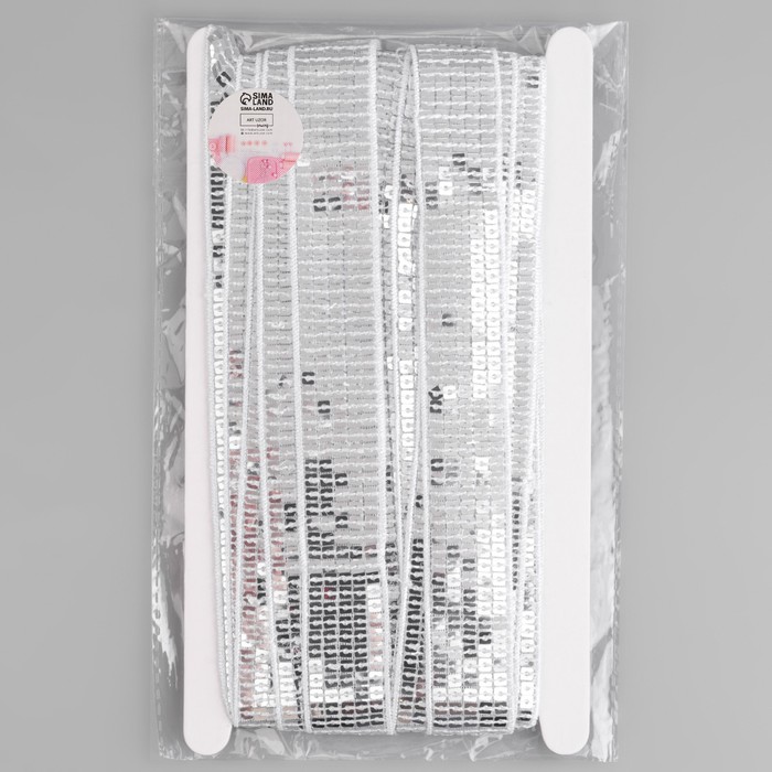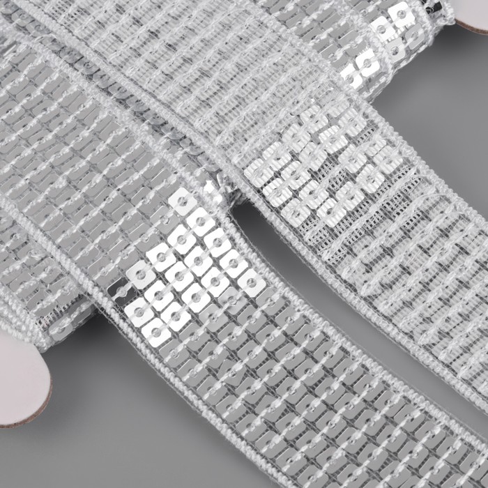 Лента декоративная с квадратными пайетками, 2.5 см, 9±0.5 м, цвет серебряный — Характеристики