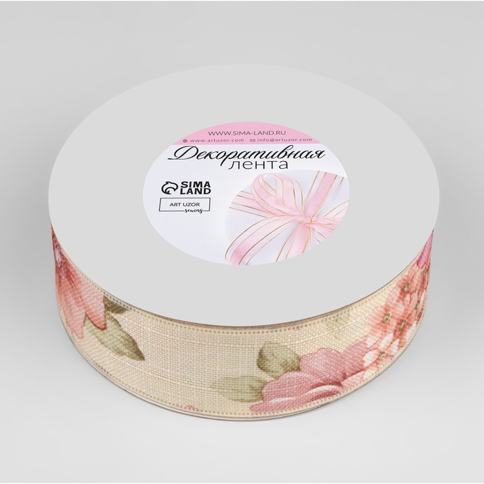 Лента декоративная «Цветы», 40 мм, 23±1 м, бежевая №2