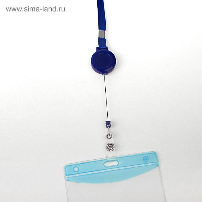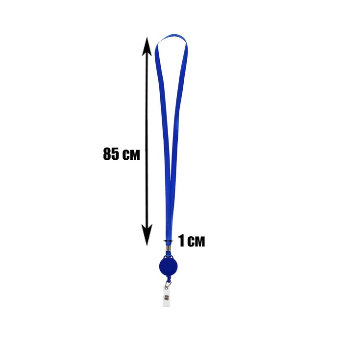 Лента для бейджа, 10 мм × 85 см, с держателем - рулеткой 40 см, и петлей, на кнопке, синий — Характеристики