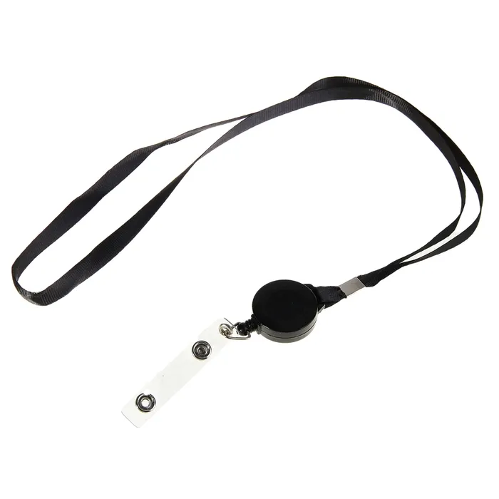Лента для бейджа, 9 мм × 85 см, с держателем - рулеткой 40 см и петлёй, на кнопке, чёрная — Характеристики