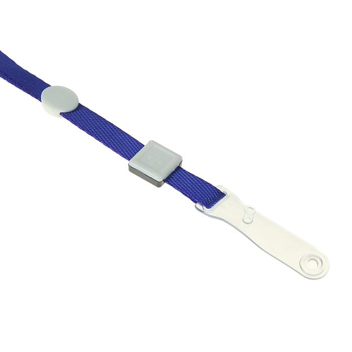 Лента для бейджа, ширина 10 мм, длина 80 см, плотная, с бегунком и с силиконовым зажимом, синяя — Характеристики
