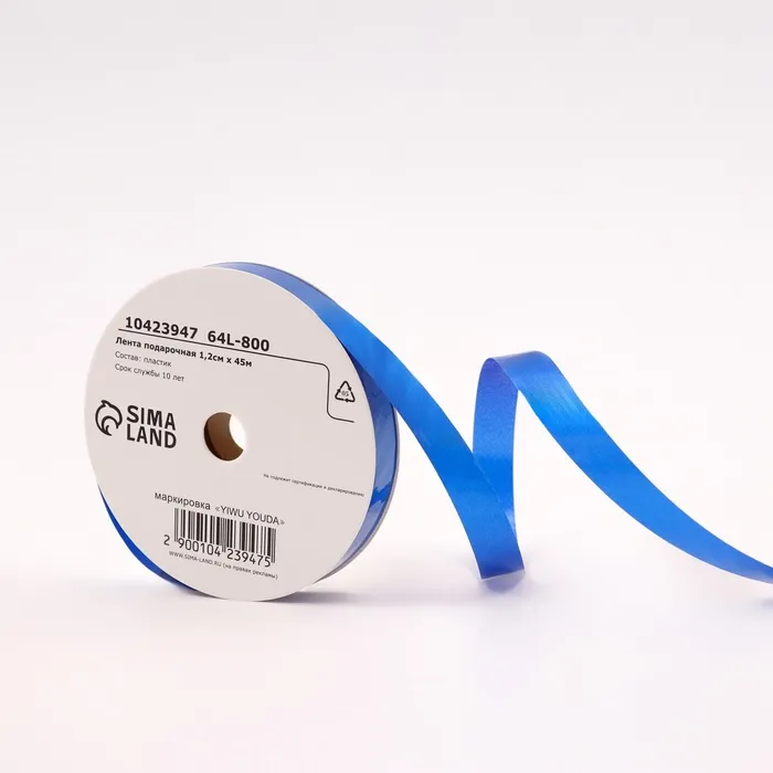Лента для декора и подарков «Глянец», 1.2 см × 45 м, синяя — Характеристики