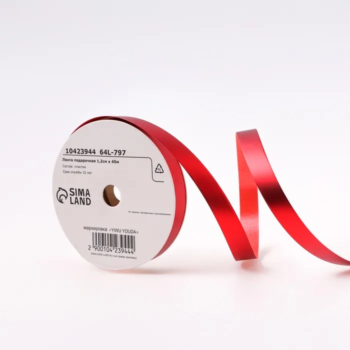 Лента для декора и подарков «Металлик», 1.2 см × 45 м, красная — Характеристики