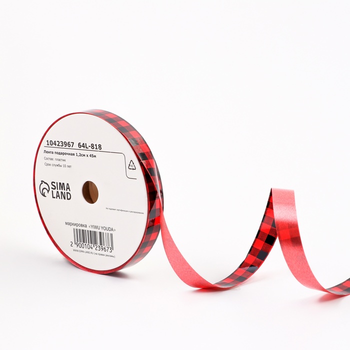 Лента для декора и подарков новогодняя «Клетка», 1.2 см × 45 м — Характеристики