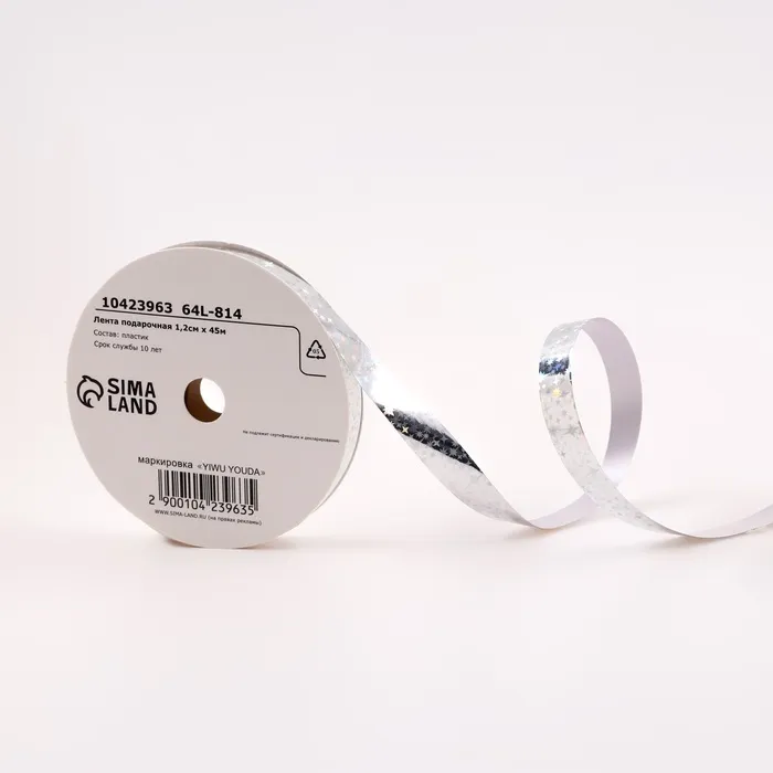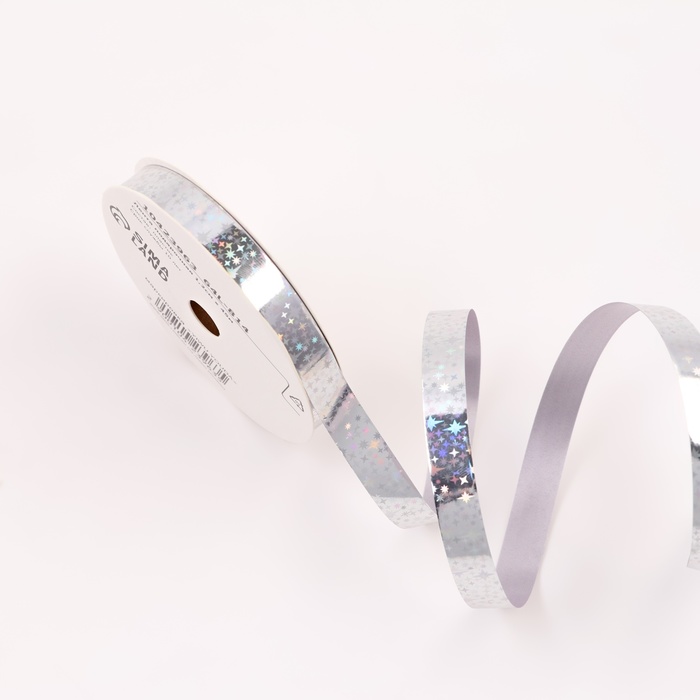 Лента для декора и подарков новогодняя новогодняяя «Звездочки глянец», 1.2 см × 45 м, серебряная — Характеристики