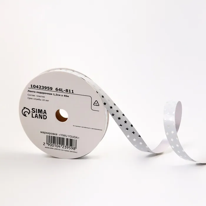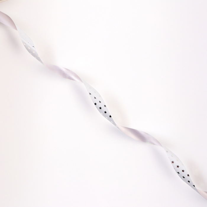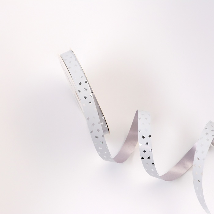 Лента для декора и подарков новогодняя новогодняяя «Звездочки металлик», 1.2 см × 45 м, белая — Характеристики