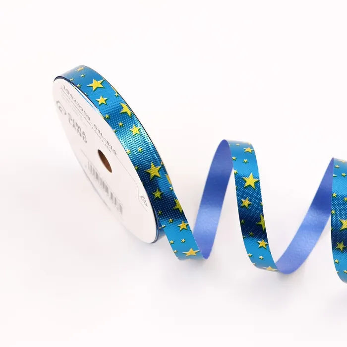 Лента для декора и подарков новогодняя новогодняяя «Звезды», 1.2 см × 45 м, синий. — Характеристики