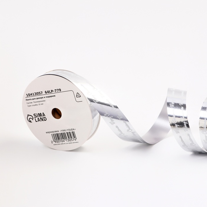 Лента для декора и подарков новогодняя, «С рождеством», серебро, 2 см × 50 м — Характеристики