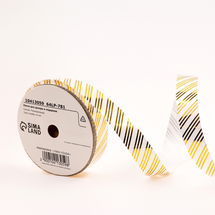 Лента для декора и подарков, «Полосы», золотая, 2 см × 50 м — Характеристики