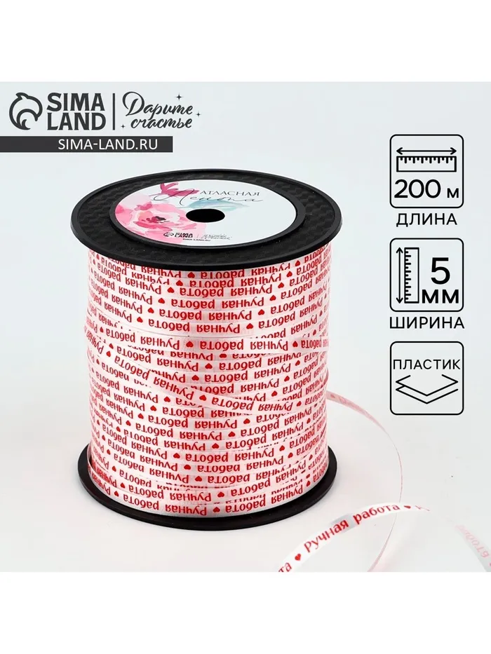 Лента для декора и подарков «Ручная работа», 0.5 см х 200м — Характеристики