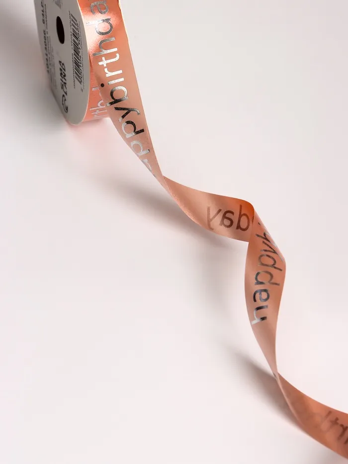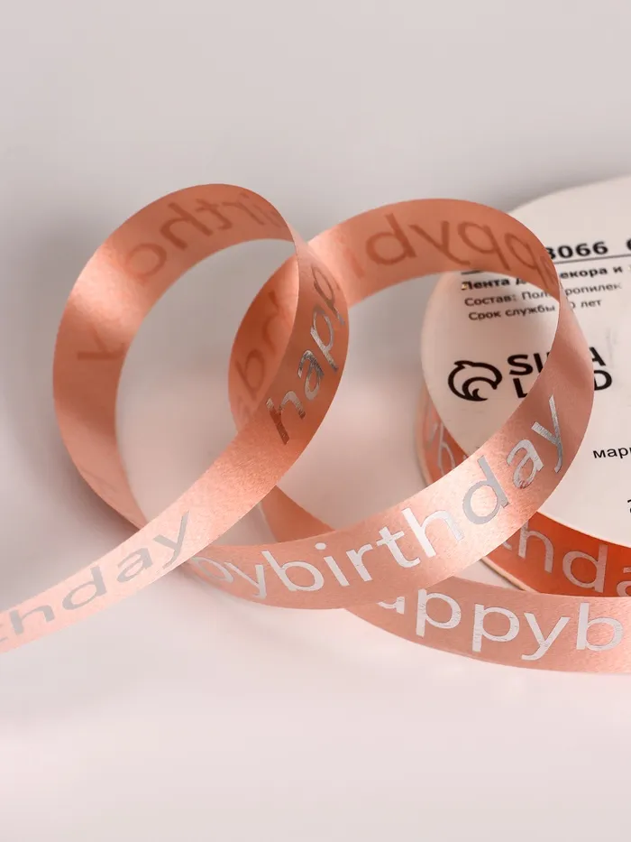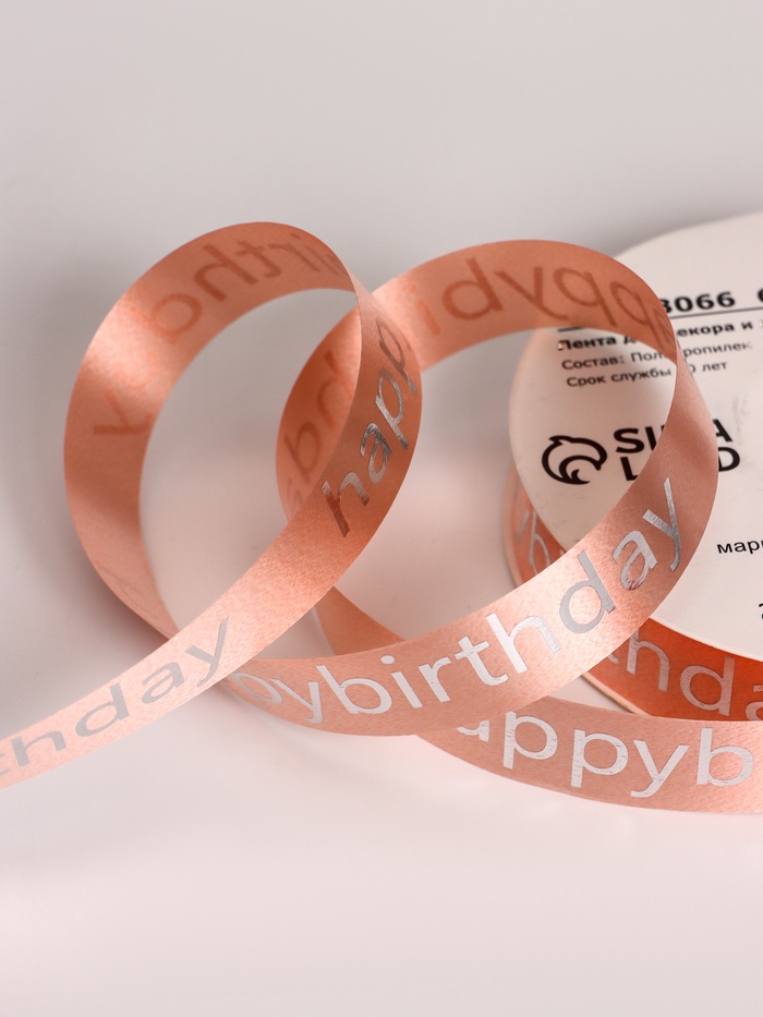 Лента для декора и подарков, «С днем рождения», розовый, 2 см × 50 м — Характеристики