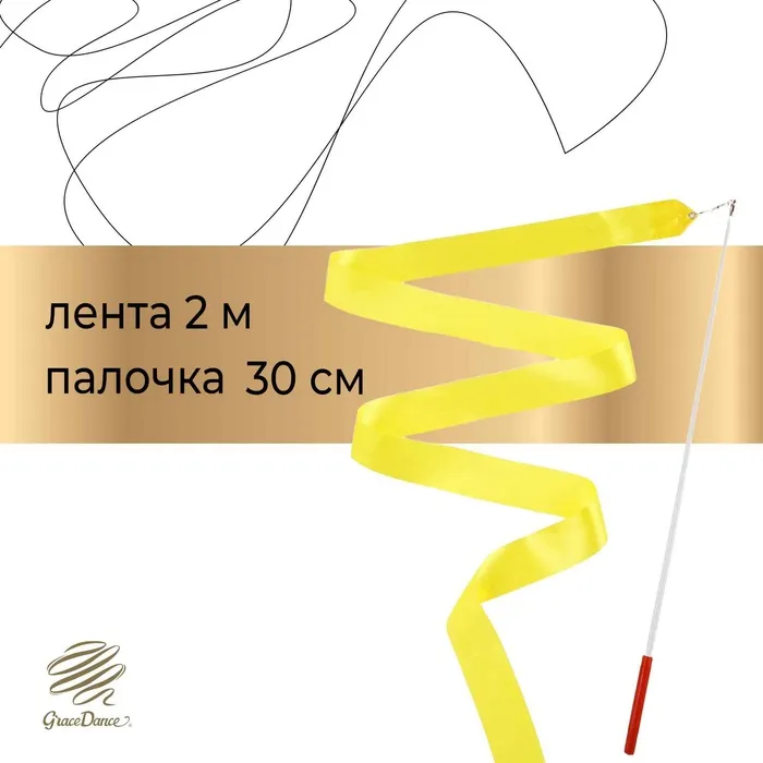 Лента для художественной гимнастики с палочкой Grace Dance, 2 м, цвет жёлтый — Характеристики