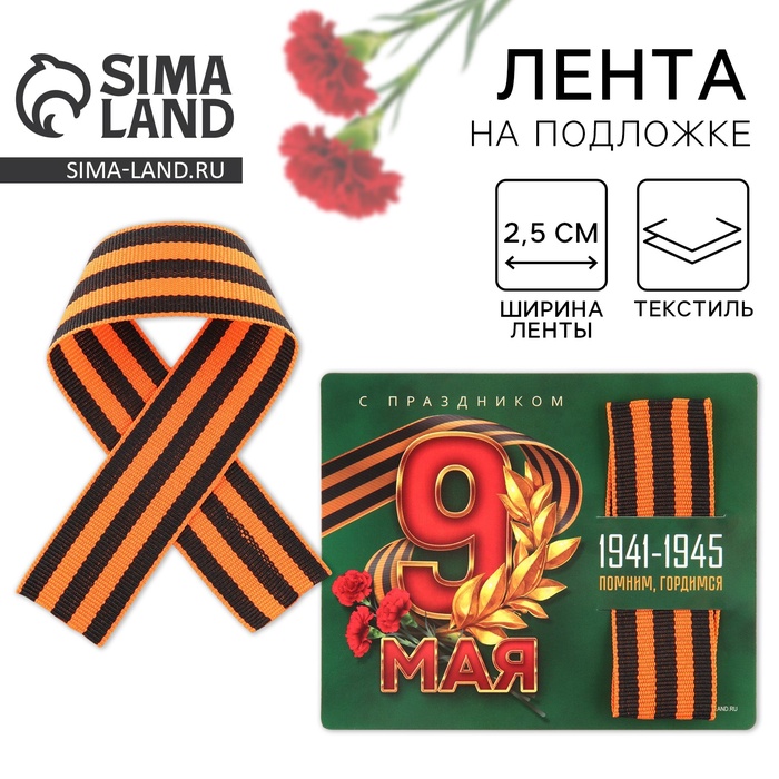 Георгиевская лента на подложке 9 мая: День победы «9 мая» 2.5×25 см