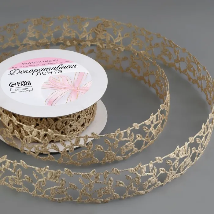 Лента фигурная «Ветви», 30 мм, 9±0.5 м, цвет золотой — Характеристики