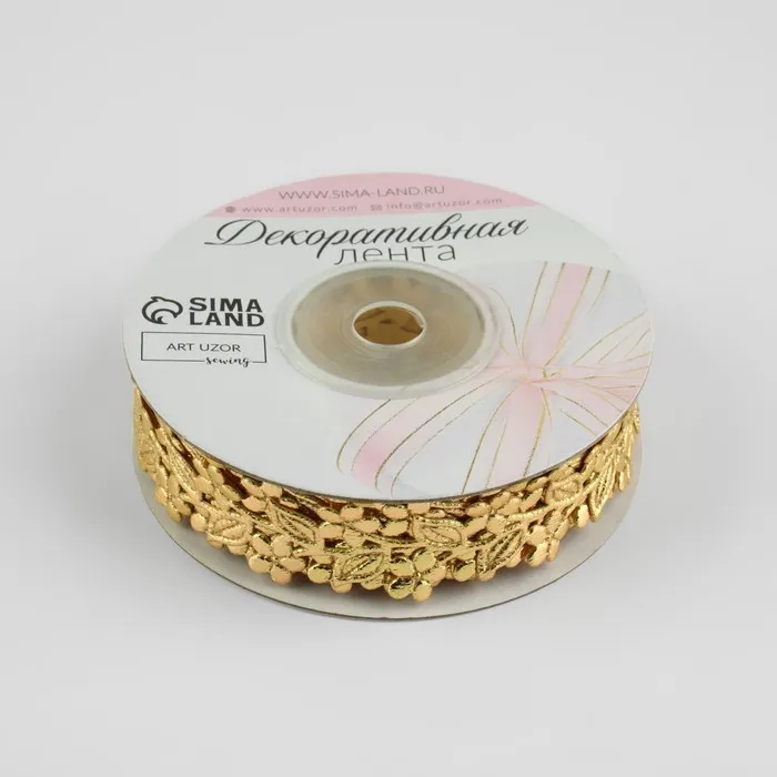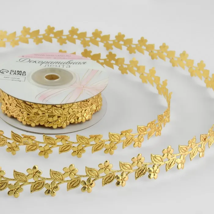 Лента фигурная «Ветви с цветами», 20 мм, 9±0.5 м, цвет золотой — Характеристики