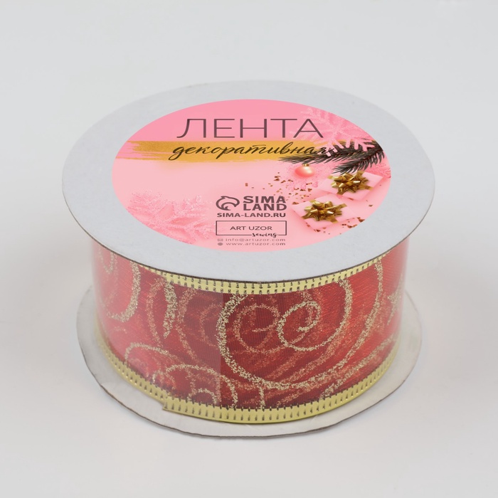 Плотная текстура и металлическая нить помогают формировать устойчивые декоративные элементы. Лента подчёркивает атмосферу праздника и создаёт выразительные акценты в любом новогоднем оформлении.