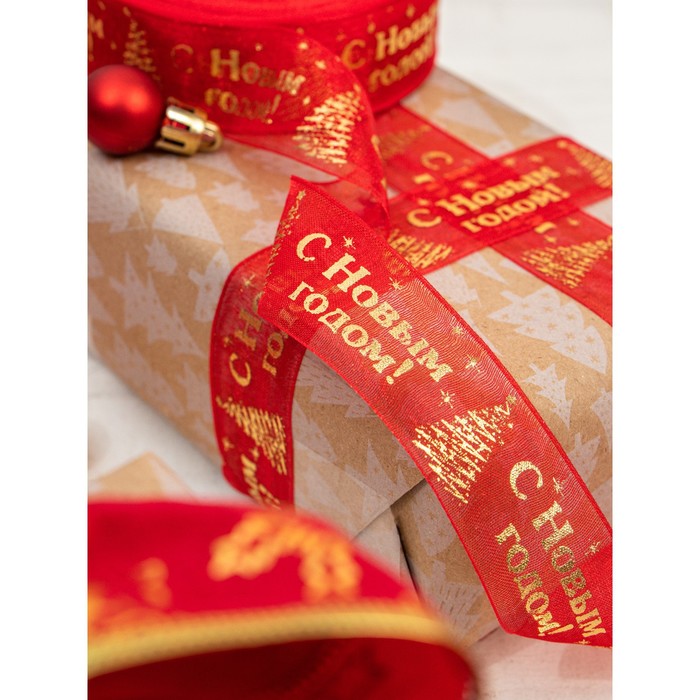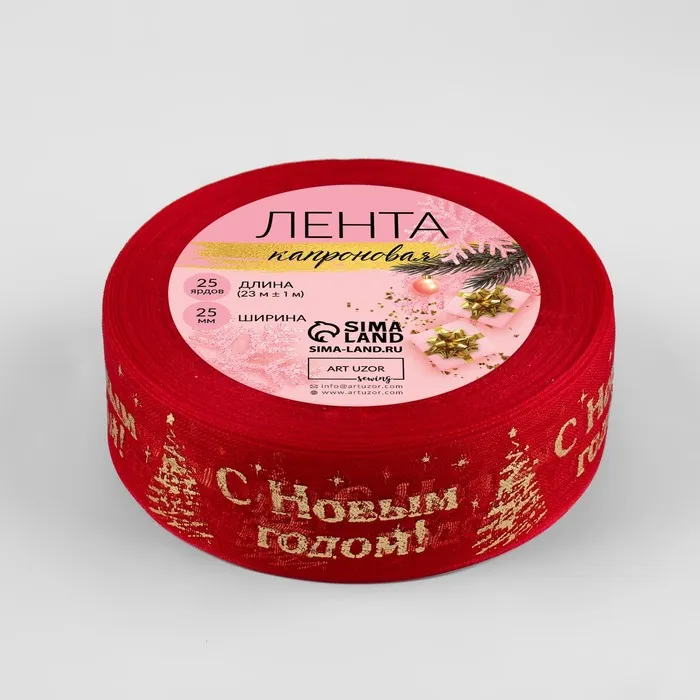 Лента капроновая с тиснением «С Новым годом», 25 мм, 23±1 м, красная, золотая №026 — Характеристики