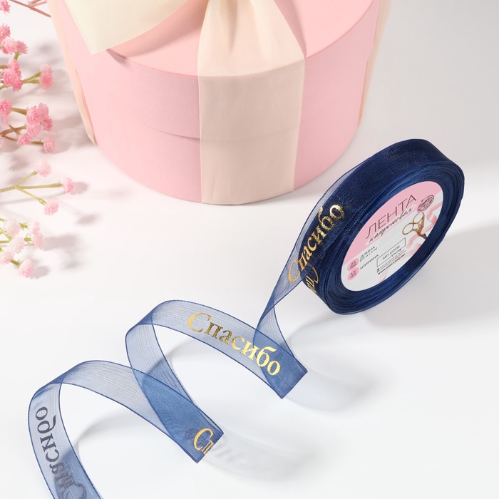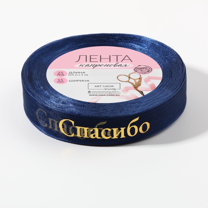 Лента капроновая с тиснением «Спасибо», 15 мм, 23±1 м, тёмно-синяя, золотая — Характеристики