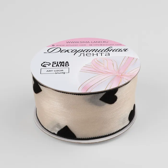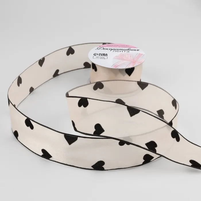 Лента капроновая «Сердечки», с рисунком, 38 мм×9.1±0.5 м, бежевая, чёрная — Характеристики