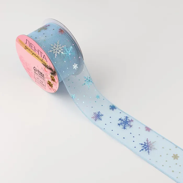 Лента капроновая «Снежинки», 40 мм, 9±0.5 м, голубая — Характеристики