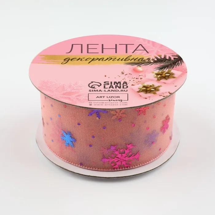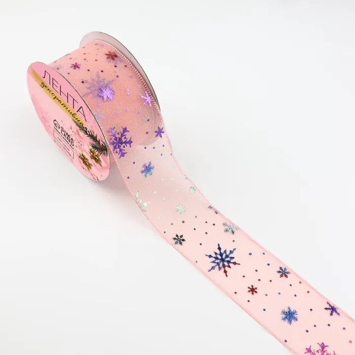 Лента капроновая «Снежинки», 40 мм, 9±0.5 м, розовая — Характеристики