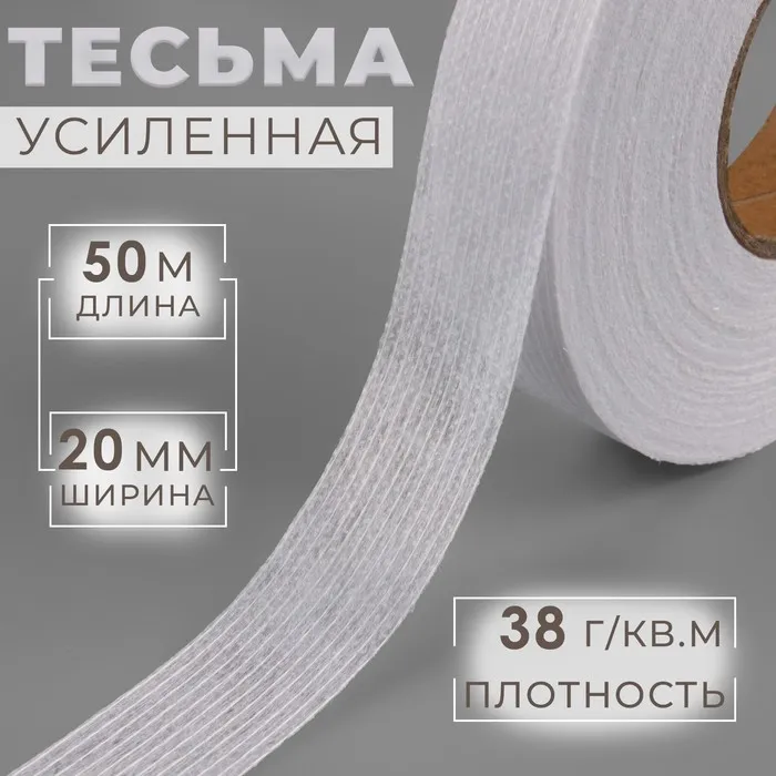 Лента клеевая нитепрошивная по долевой, 38 г, м², 20 мм, 50 м, белая — Характеристики