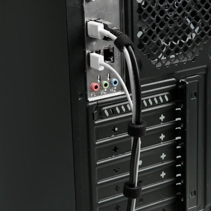 - Универсальное крепление: Лентой удобно связывать компьютерные провода, аудиокабели, шнуры для бытовой техники и удлинители. Ширина 10 мм подходит для большинства типов кабелей.