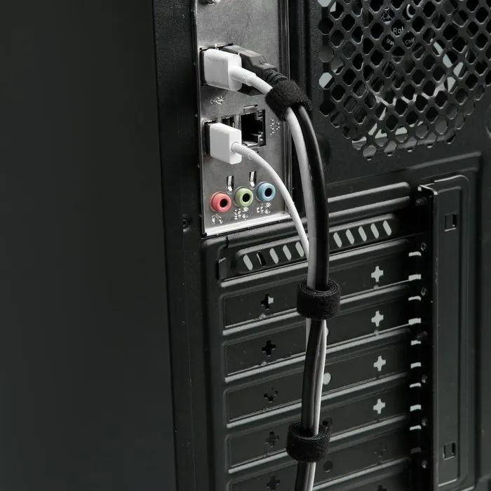 - Многоразовое использование: Система «крючок-петля» позволяет многократно застегивать и расстегивать крепление. Провода можно легко добавить или убрать, не повреждая ленту.
