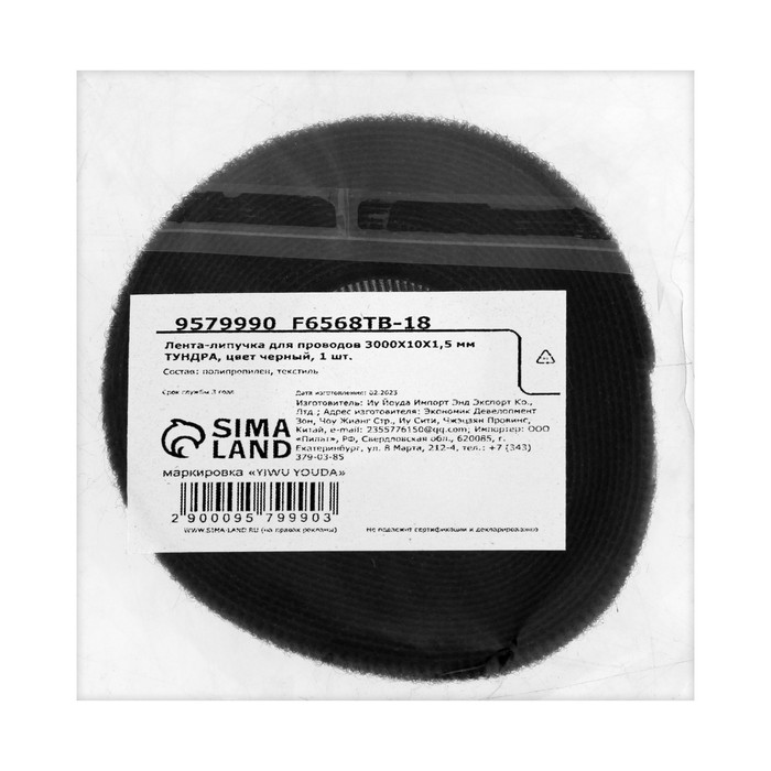 Лента-липучка для проводов 3000×10×1.5 мм ТУНДРА, чёрная, 1 шт. — Характеристики