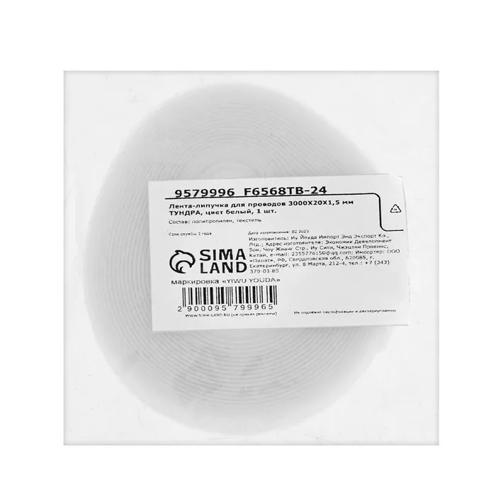 Лента-липучка для проводов 3000×20×1.5 мм ТУНДРА, белая, 1 шт. — Характеристики