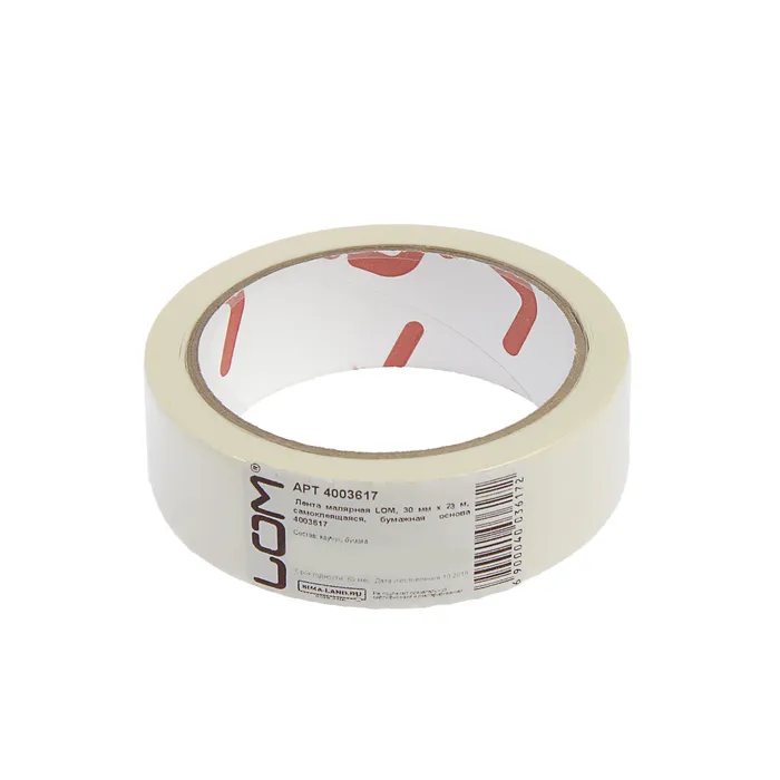Лента малярная ЛОМ, самоклеящаяся, бумажная основа, 120 мкм, 30 мм × 23 м — Характеристики