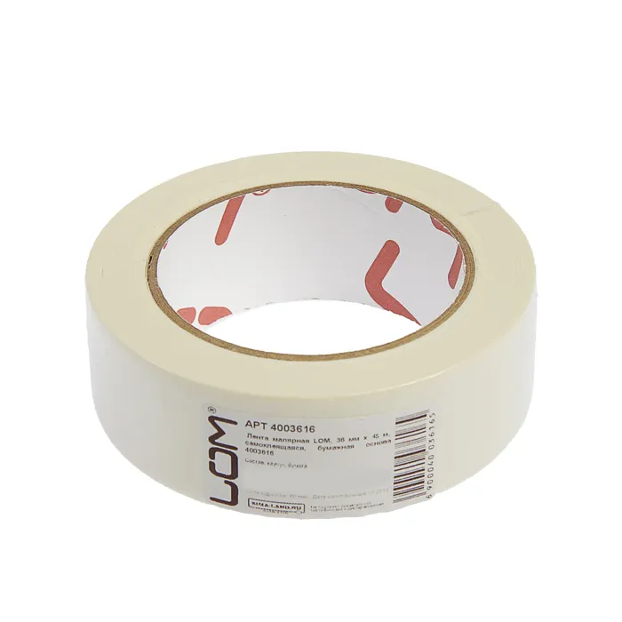 Лента малярная ЛОМ, самоклеящаяся, бумажная основа, 120 мкм, 36 мм × 45 м — Характеристики