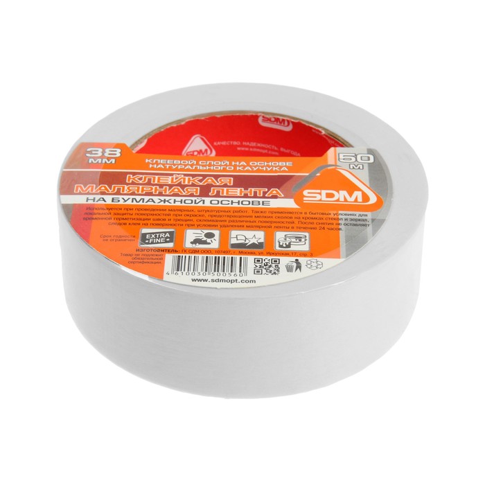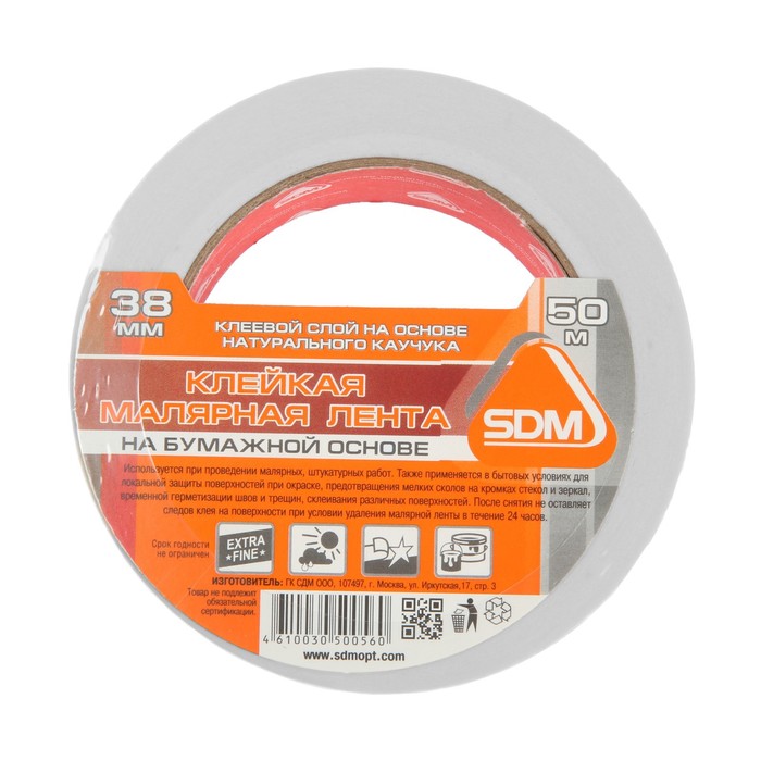 Лента малярная SDM, самоклеящаяся, бумажная основа, ГОСТ, 38 мм х 50 м