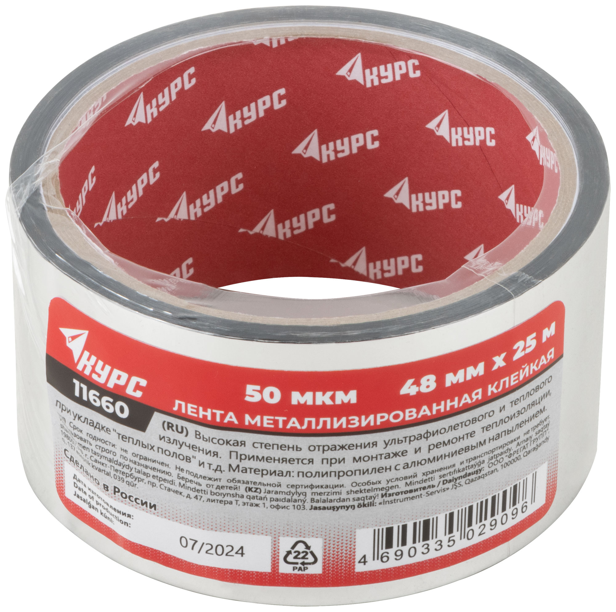 Выберите металлизированную клейкую ленту 48 мм х 25 м от КУРС, чтобы обеспечить надежную и долговечную защиту вашей теплоизоляции.