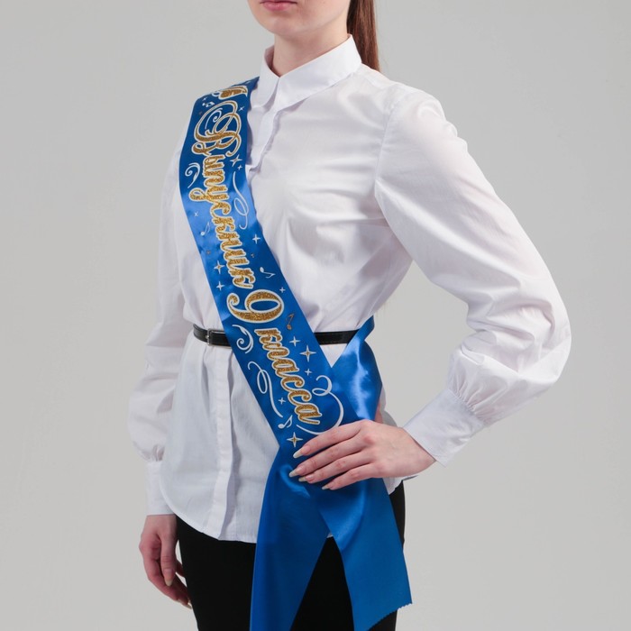 Лента на выпускной «Выпускник 9 класс», атлас синий 3D — Характеристики