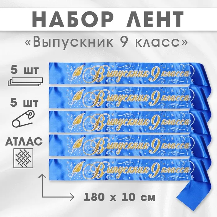 Лента на выпускной «Выпускник 9 класса», атлас синий 3D, 5 шт. — Характеристики
