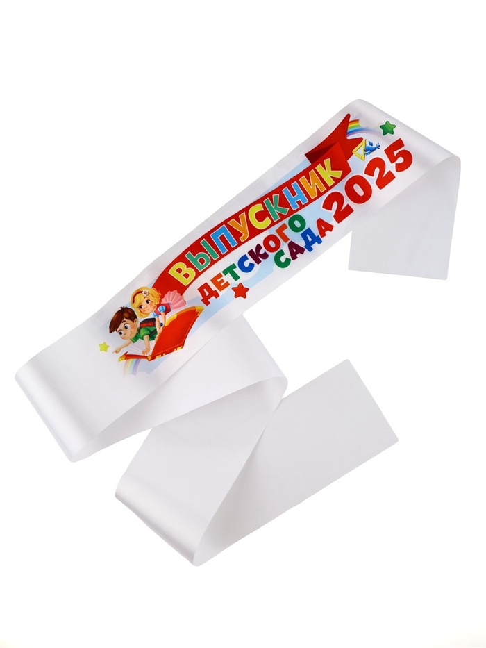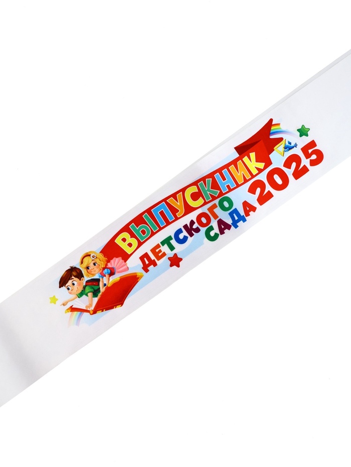 Лента на выпускной «Выпускник детского сада 2025», атласная с цветным нанесением, 140×10 см — Характеристики
