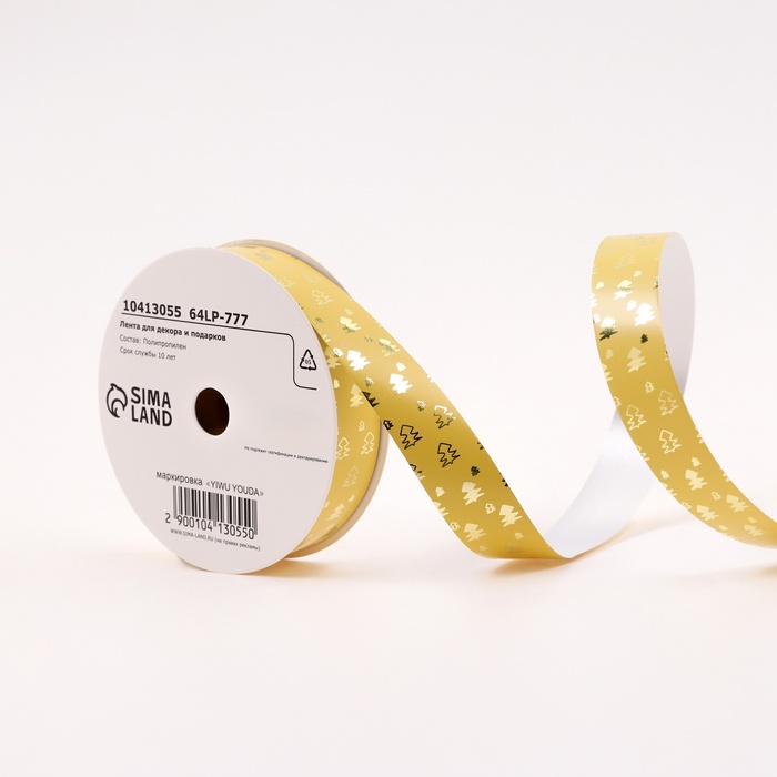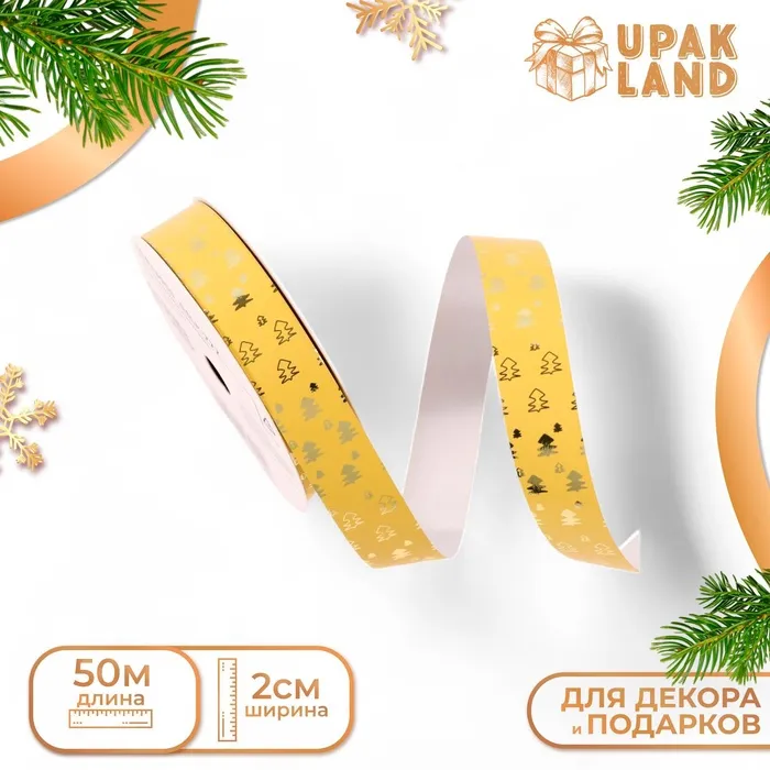 Лента новогодняя декора и подарков, «Елки», золотая, 2 см × 50 м — Характеристики