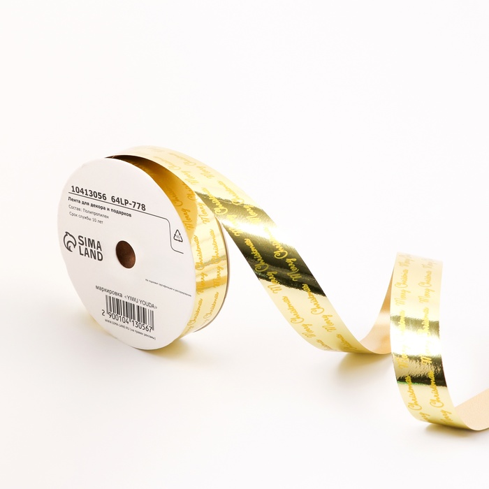Лента новогодняя для декора и подарков «С рождеством», золотая, 2 см × 50 м — Характеристики