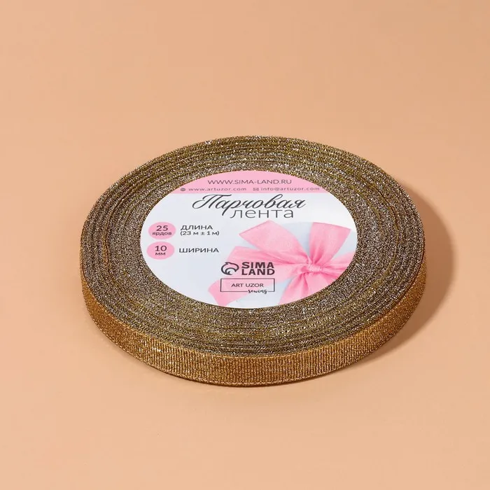 Лента парчовая, 10 мм, 23±1 м, бежевая №035 — Характеристики
