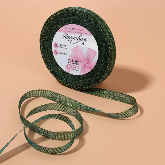 Лента парчовая, 10 мм, 23±1 м, зелёная — Характеристики
