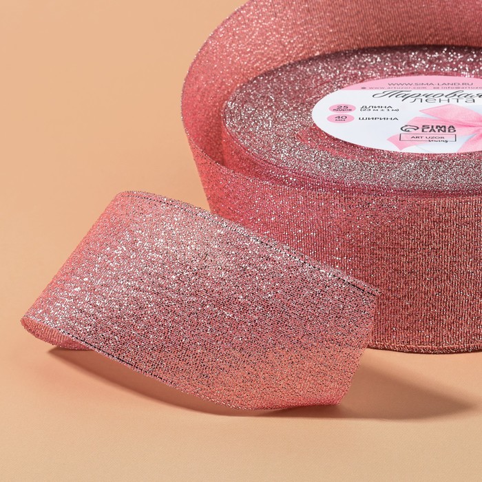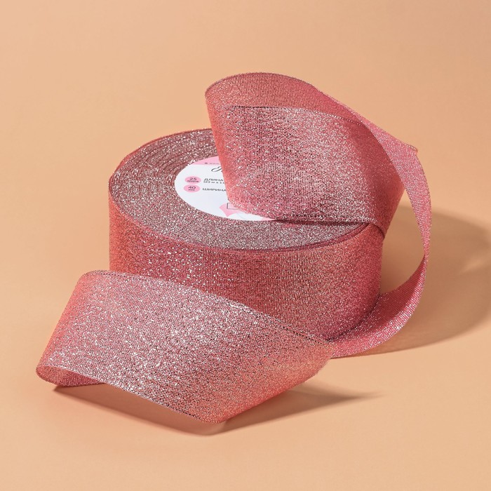 Лента парчовая, 40 мм, 23±1 м, розовая №013 — Характеристики