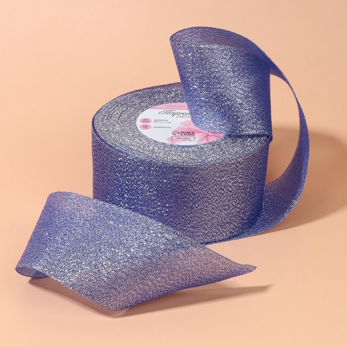 Лента парчовая, 50 мм, 23±1 м, синяя №037 — Характеристики