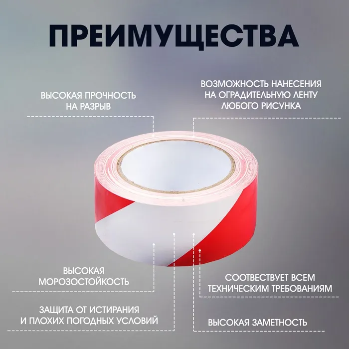 Лента разметочная ТУНДРА, клейкая, красно-белая, 150 мкм, 48 мм × 33 м — Характеристики