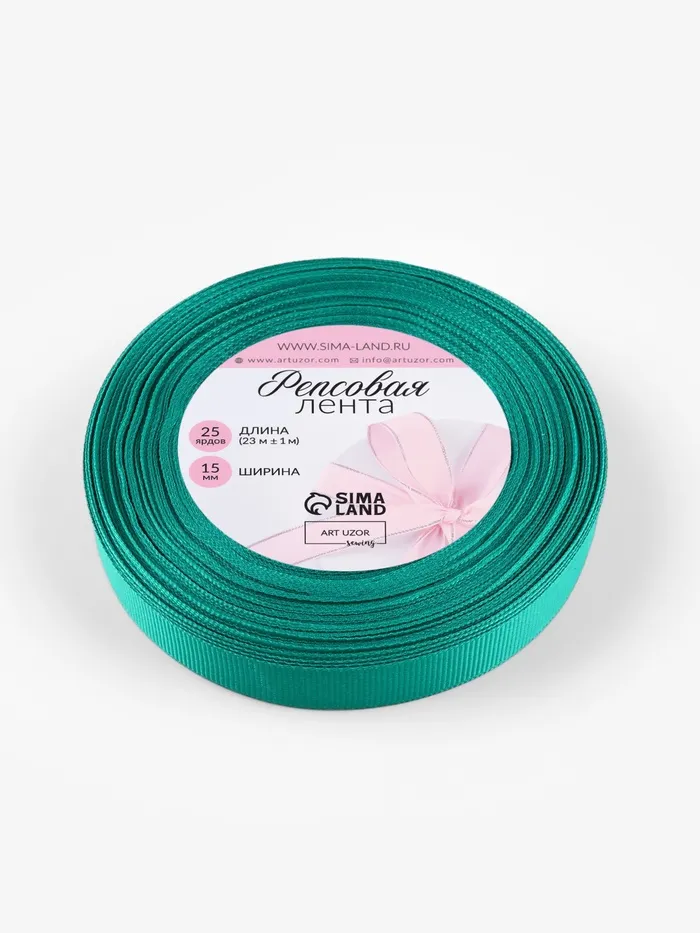 Лента репсовая, 15 мм, 23±1 м, изумрудная №209 — Характеристики
