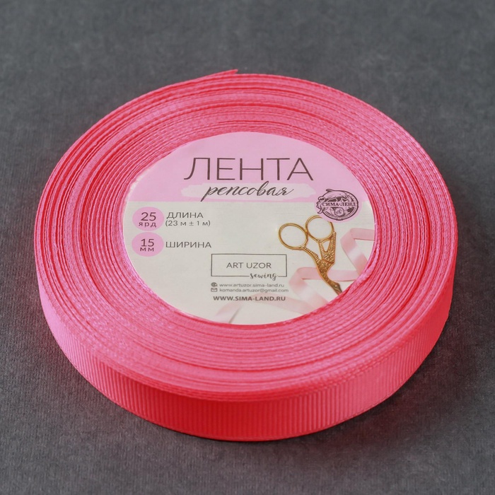 Лента репсовая, 15 мм, 23±1 м, неоново-розовая №14 — Характеристики