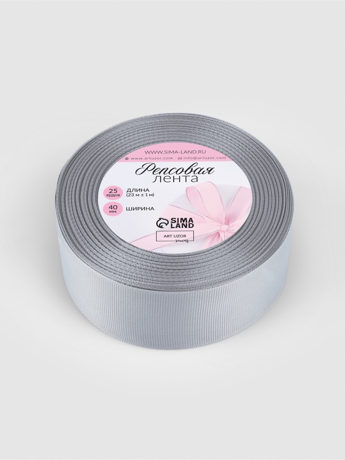 Лента репсовая, 40 мм, 23±1 м, светло-серая №3