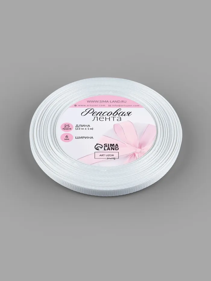 Лента репсовая, 6 мм, 23±1 м, белая №01 — Характеристики