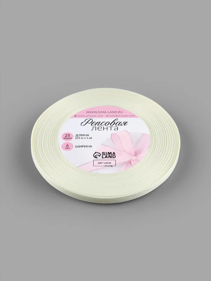 Лента репсовая, 6 мм, 23±1 м, молочная №08 — Характеристики