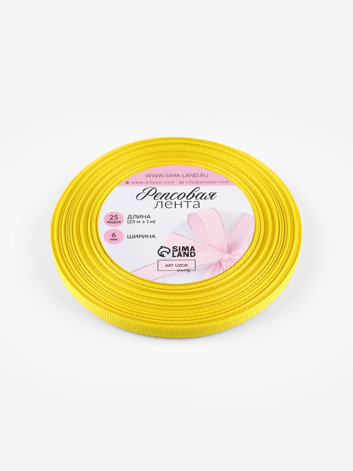 Лента репсовая, 6 мм, 23±1 м, жёлтая №15 — Характеристики